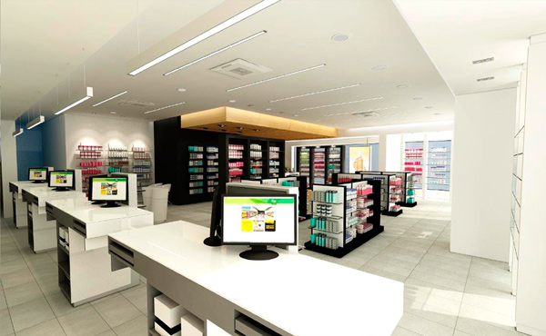 Upon the reopening of this pharmacy in a space three times larger and with a good sun exposure, the owners sought a LED lighting system that reinforced the concept of the space, while enabling light adjustment and a good integration of interior and exterior lighting, and conducting to substantially lower its operational costs.